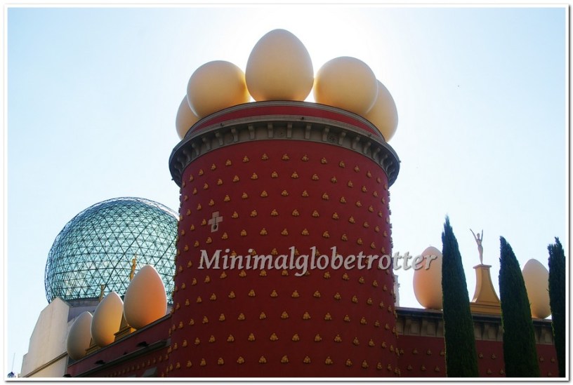 All’esterno colpiscono le grandi uova bianche (simbolo di speranza e amore) disposte sul tetto tutt’intorno alla facciata rosa, e nell’entrarvi si viene subito catapultati nell’immaginario di Dalì: il solo cortile a semicerchio – con la vecchia Cadillac nera sotto la fontana e le statue dorate alle finestre – che si apre sul vecchio palcoscenico del teatro, con dietro una grande tela surrealista e sovrastato dalla grande cupola in plexiglas, vale il viaggio.