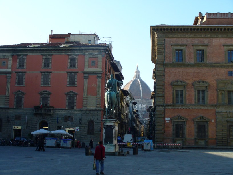 Nella giornata del Fai di Primavera, qualche domenica fa, il Cimitero degli inglesi, restaurato, è stato aperto ai turisti con le visite guidate dagli studenti degli istituti fiorentini. In quell’occasione abbiamo conosciuto Suor Giulia, da 17 anni custode del monumento, che ci ha parlato della sua biblioteca e del suo costante impegno per la ricerca di contributi utili a continuare le opere di restauro. Poi a piedi ci siamo diretti verso il centro che dista circa un chilometro, una parte di città più defilata e tranquilla di domenica mattina rispetto a quella turistica. Abbiamo percorso via Vittorio Alfieri fino alla spaziosa piazza Massimo D’Azeglio da cui si scorge più in là, la cupola dorata della Sinagoga Ebraica e si può ammirare il Villino Uzielli uno dei primi esempi di Art Nouveau in città, e la casa dove visse Pellegrino Artusi che nel 1891 scrisse il famoso manuale di ricette ricordato semplicemente con il suo nome anche se il titolo vero è “La scienza in cucina e l’arte di mangiare bene”.