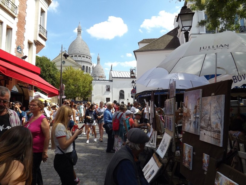 Così dopo tanto impegno non potevamo deluderla e l’ultima sera decidemmo di passarla a Montmartre. Cercare una strada col buio non è facile così eravamo sul posto prima delle sette quando era ancora giorno. Saliti sulla collina con la funicolare ci mettiamo alla ricerca, guida alla mano aperta alla pagina della cartina, sembra a sinistra del Sacro Cuore e ci dirigiamo in quella direzione ma la ricerca si rivelerà più difficile di quel che pensavamo.