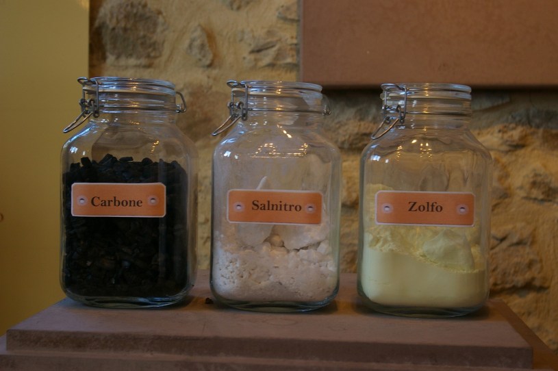 La polvere da sparo era l’altra colonna portante del sostentamento economico delle famiglie di Chitignano, la più particolare di cui invece non si hanno notizie documentate per risalire alle origini. La polvere nera o pirica era nata in Cina nel IX secolo e arrivò in occidente nel 1300 e solo dal ‘400 venne utilizzata a scopo bellico dopo l’invenzione delle armi da fuoco. Nel 1420 dalla polvere si passa ai grani con combustione istantanea e più sicura. Le prime fonti storiche a Chitignano attestano la presenza di tre polverifici legalmente autorizzati ma solo dai primi dell’800, che nonostante il decreto regio continuarono a lavorare mentre tanti altri dovettero chiudere. Fu così che si diffuse la produzione illegale su cui vivevano intere famiglie.