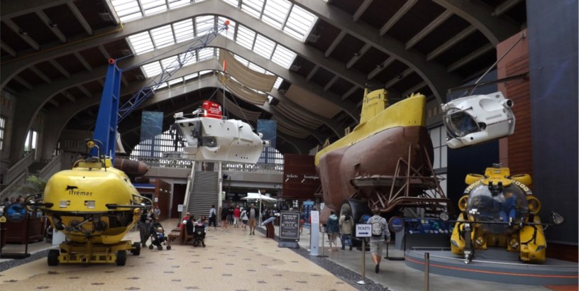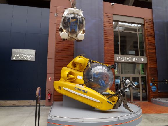 Nella grande sala, dove entravano sbuffanti i treni a vapore, con grandi volte, vetrate e scalinata monumentale, sono in mostra batiscafi e piccoli sommergibili che hanno fatto la storia dell’esplorazione dei fondali marini e permesso grandi imprese scientifiche: da una copia del mitico Nautilus di Capitan Nemo fino all’americano Alvin, con la sfera abitacolo in titanio, utilizzato dal 1987 per l’esplorazione, a 3800 metri di profondità, del relitto del Titanic.