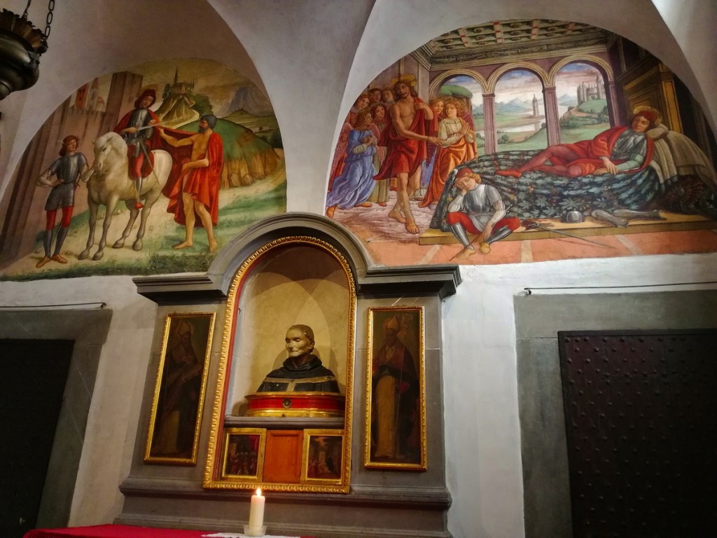 Dell’antica chiesa oggi non rimane quasi niente, solo qualche traccia di muro nel canto della Quarconia, ma al suo posto vi è un piccolo gioiello, ignorato dai turisti e poco conosciuto, un piccolo oratorio costruito nel ‘400 sorto poco oltre l’antica abside della preesistente chiesa. L’Oratorio dei Buonomini di San Martino ha una storia particolare da raccontare e per questo che lo facciamo anche se la sua costruzione è successiva all’epoca di Dante.