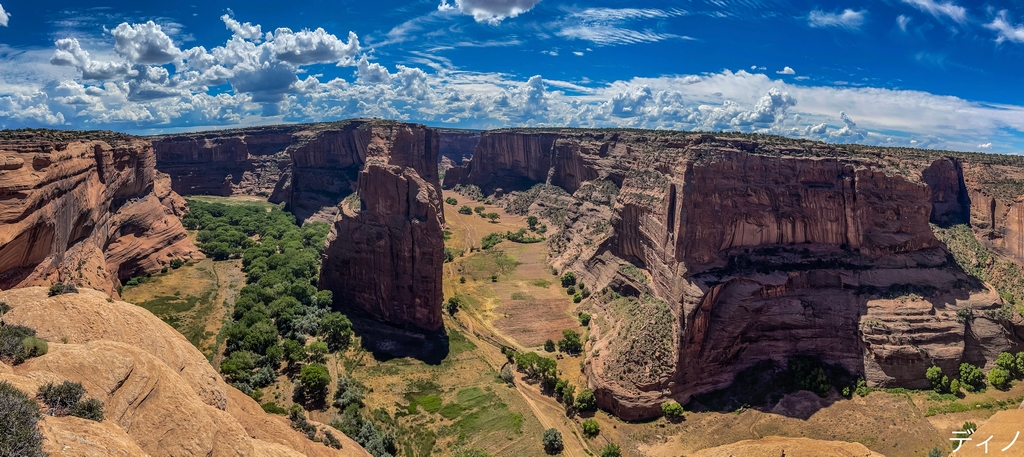 13 giorno – Attraversiamo la Four Corners region, il punto in cui si intersecano i confini rettilinei, come assi cartesiani, di quattro Stati: Utah, Colorado, New Mexico e Arizona. Scendiamo con un breve passaggio nel New Mexico arrivando finalmente in Arizona, terra di sogni e di chimere… con un clima volubile e panorami nelle tonalità arancio e verde.