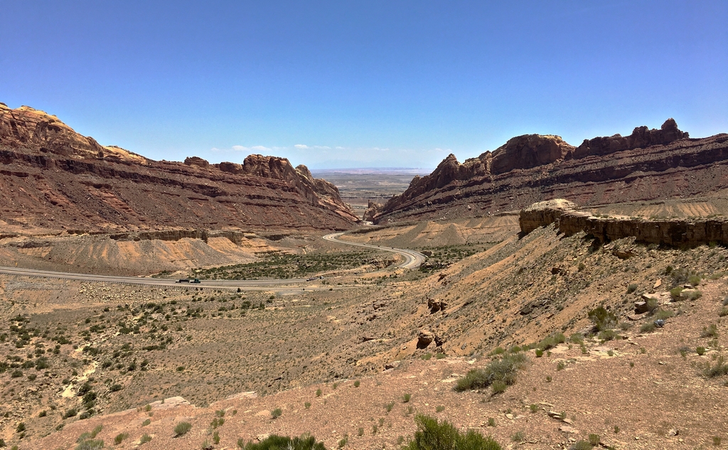 9° giorno – Ripartiamo per raggiungere Arches National Park, circa 4 ore e mezza di guida. Alloggeremo a Moab per due notti. Il percorso è costeggiato da montagne scenografiche, il panorama è da mozzare il fiato, facciamo molte miglia senza incontrare centri abitati. L’atmosfera ricorda i film western. Attraversiamo il Devil’s Canyon view area– Green River nel San Rafael State Park dal colore rosso delle montagne, talvolta anche nella tonalità verde veronese, dovuto alla presenza di ossido di ferro nelle rocce di calcare/arenaria.